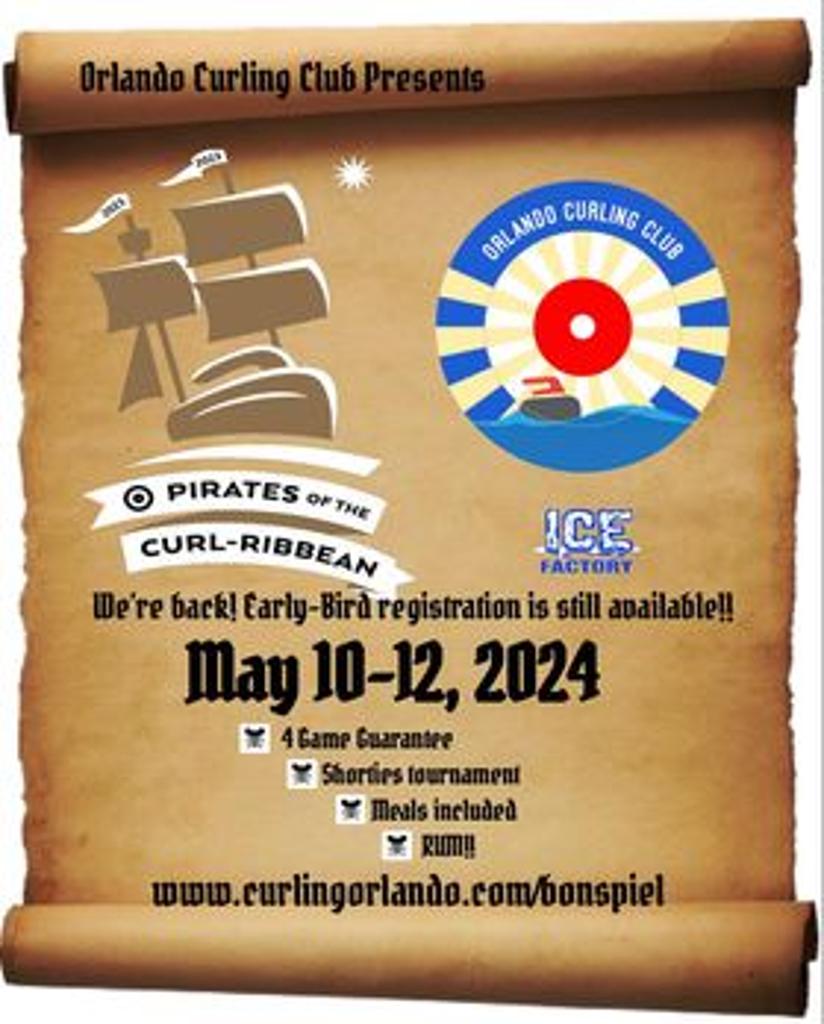 The Orlando Curling Club is hosting their annual PIRATES OF THE CURL-RIBBEAN from May 10-12, 2024. If you are interested head to their website: www.curlingorlando.com/bonspiel